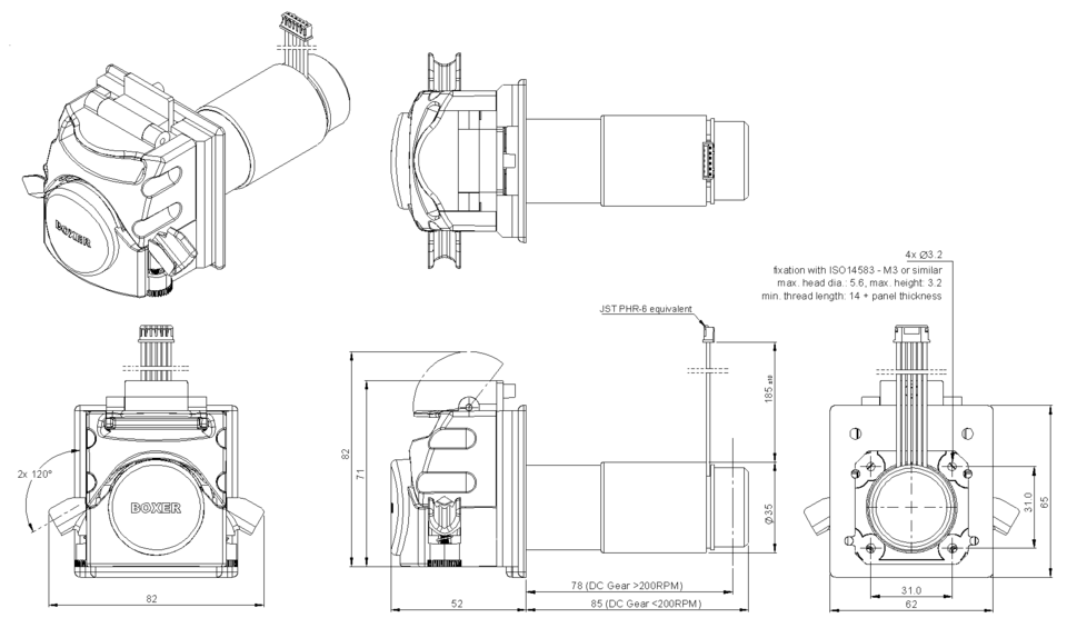 Optional encoder | 10 pulses per motor revolution (associated rotor speed depends in gear ratio) |